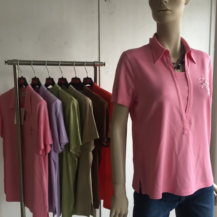 Maglieria donna taglie comode M/M made in Italy in fresco filato di viscosa polo e girocollo , lotto minimo 24 pz. assortito con girocollo nella var. marrone e polo nelle var. visibili nelle foto e assortimento delle taglie dalla S alla XXL al prezzo di € 4,90 cd. ( per acquisti più consistenti il prezzo viene concordato in base all’entità dell’ordine).